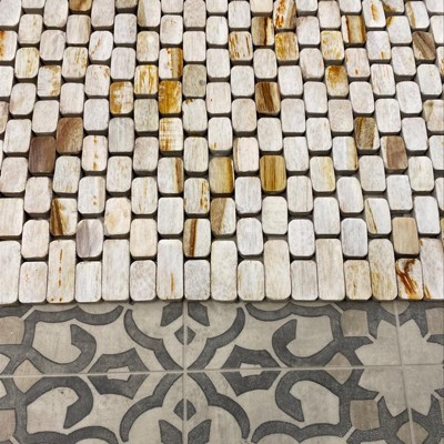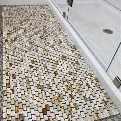 Rosewood Bath and Floor Runner White - Hip-o Modern Living: Geometric Woven Wood, Recycled Rubber Backing