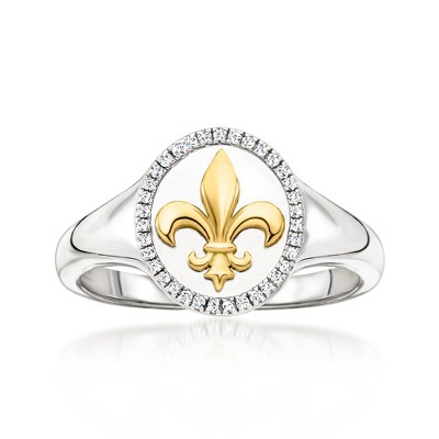 Ross-Simons 0.10 ct. t.w. Diamond and Blue Enamel Ring in 18kt Gold Over Sterling