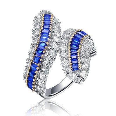 • GENUINE 10KT GOLD — .20 ct. t.w. sapphire bypass ring in 10kt yellow gold. Round sapphires. Polished finish. 3/8 in. wide. Size 5.