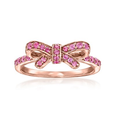 Product Name: Ross-Simons 0.30 ct. t.w. Pink Sapphire Bow Ring in 18kt Rose Gold Over Sterling Size 5