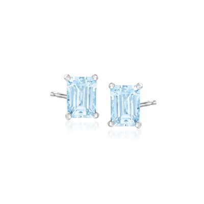 AQUAMARINE IN 14KT YELLOW GOLD — .50 ct. t.w. round aquamarine stud earrings in 14kt yellow gold. Round aquamarines. Polished finish. 1/8 diameter. Post/clutch backings.