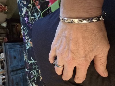 Whether you're getting ready for a day by the ocean or just dreaming of one, this sea life bangle is a fun addition to your stack! The bracelet presents shiny seashells and starfish, twinkling with 0.50 ct. t.w. London and Swiss blue topaz. Set in sterling silver. Hinged with a double-latch safety. Box clasp, tonal blue topaz sea life bangle bracelet. Stone InformationGem Type 1: TopazStone Cut 1: Good-CutStone Color 1: BlueStone Clarity 1: BlueStone Shape 1: Round-ShapeStone Creation Method 1: NaturalStone Treatment Method 1: Heat-Treated,IrradiatedStone Weight 1: 0.30 CaratsNumber Of Stones 1: 24Gem Type 2: TopazStone Cut 2: Good-CutStone Color 2: BlueStone Clarity 2: BlueStone Shape 2: Round-ShapeStone Creation Method 2: NaturalStone Treatment Method 2: Heat-Treated,IrradiatedStone Weight 2: 0.20 CaratsNumber Of Stones 2: 18