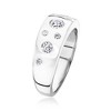 Big on sparkle, small on price! Our high-polished sterling silver band is stylishly scattered with 0.60 ct. t.w. round brilliant-cut CZs in a modern mix of sizes. 1/4" wide. CZ ring. CZ weights are diamond equivalents. Stone InformationGem Type 1: Cubic-ZirconiaStone Cut 1: Good-CutStone Color 1: Good-CutStone Clarity 1: Good-CutStone Shape 1: Round-ShapeStone Creation Method 1: SyntheticStone Treatment Method 1: Not-TreatedStone Weight 1: 0.60 CaratsNumber Of Stones 1: 9