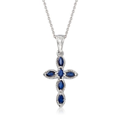 Expressive 0.80 ct. t.w. marquise sapphires adorn this beautiful cross pendant necklace, set in polished sterling silver and 18kt yellow gold over sterling silver. For a person of faith, it would make a special September birthstone piece or gift for a religious milestone. Suspends from a cable chain. Springring clasp, sapphire cross pendant necklace. Necklace drop length - 1 3/8 inches long. Necklace drop width - 5/8 inch wide. Stone InformationGem Type 1: SapphireStone Cut 1: Good-CutStone Color 1: BlueStone Clarity 1: BlueStone Shape 1: Marquise-ShapeStone Creation Method 1: NaturalStone Treatment Method 1: HeatedStone Weight 1: 0.80 CaratsNumber Of Stones 1: 6