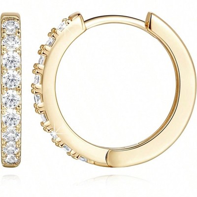 Product Name: Ross-Simons 1.00 ct. t.w. Diamond Station Hoop Earrings in 18kt Gold Over Sterling