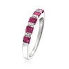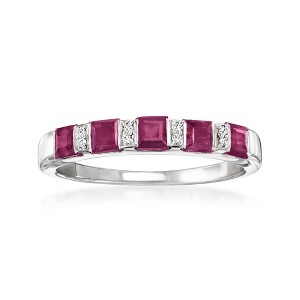 Add color and sparkle to your stack with this must-have ring! In a neat line, vibrant 1.50 ct. t.w. square rubies alternate with round brilliant-cut diamonds in polished sterling silver. 1/8" wide. Ruby ring. Stone InformationGem Type 1: RubyStone Cut 1: Good-CutStone Color 1: RedStone Clarity 1: RedStone Shape 1: Square-ShapeStone Creation Method 1: NaturalStone Treatment Method 1: Heat-TreatedStone Weight 1: 1.50 CaratsNumber Of Stones 1: 5Gem Type 2: DiamondStone Cut 2: Good-CutStone Color 2: I-JStone Clarity 2: I2Stone Shape 2: Round-ShapeStone Creation Method 2: NaturalStone Treatment Method 2: Not-TreatedStone Weight 2: 0.04 CaratsNumber Of Stones 2: 8