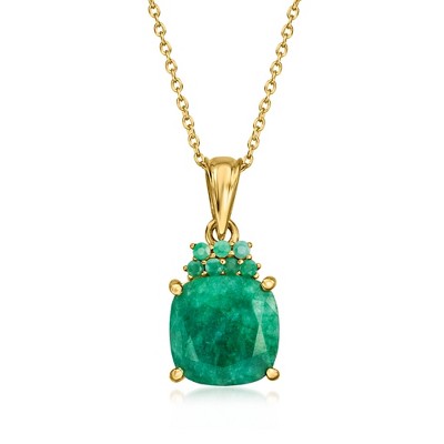 GENUINE 10KT GOLD — 1.60 carat emerald pendant necklace in 10kt yellow gold. 7x7mm square cushion-cut emerald. Polished finish. Pendant is 1/2 in. long by 1/4 in. wide. 1.1mm cable chain is 16 in. long with a 2 in. extender. (Single bale fits up to a 2.5mm chain.) Springring clasp.