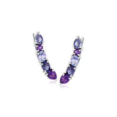 Product Name: Ross-Simons 1.80 ct. t.w. Amethyst and 1.50 ct. t.w. Pink Topaz C-Hoop Earrings in 18kt Gold Over Sterling