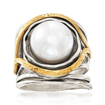 Ross-Simons 11.5-12mm Black Cultured Pearl Openwork Ring in Sterling Silver and 14kt Yellow Gold