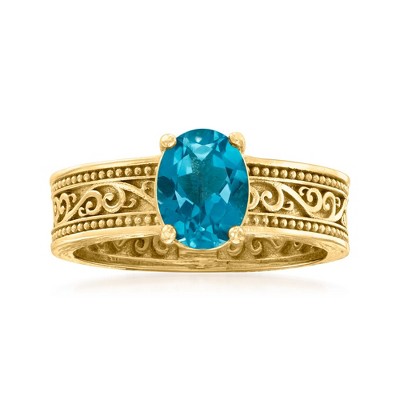 Oval shape london blue topaz and round shape diamond accent. Polished 18kt yellow gold over sterling silver.