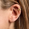 Throw your hair in a bun and let this pretty ear cuff shine! Crafted of polished 14kt yellow gold, the simple multi-row design brings a splash a warm radiance to your whole look. No piercing required. 14kt yellow gold multi-row single ear cuff.