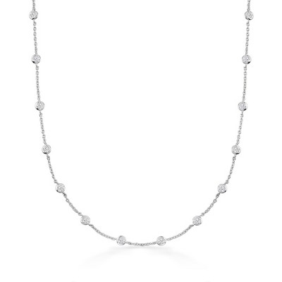 With this cheerful 1.00-2.30 ct. t.w. CZ station necklace to add a bit of sparkle to your favorite ensemble, you'll have an extra dose of glimmer for day-to-night style success. Bezel settings add a contemporary touch to the 18kt yellow gold over sterling silver cable chain. Springring clasp, CZ station necklace. CZ weights are diamond equivalents. Stone InformationGem Type 1: Cubic-ZirconiaStone Cut 1: Good-CutStone Color 1: Good-CutStone Clarity 1: Good-CutStone Shape 1: Round-ShapeStone Creation Method 1: SyntheticStone Treatment Method 1: Not-TreatedStone Weight 1: 1.00-2.50 CaratsNumber Of Stones 1: 10-25