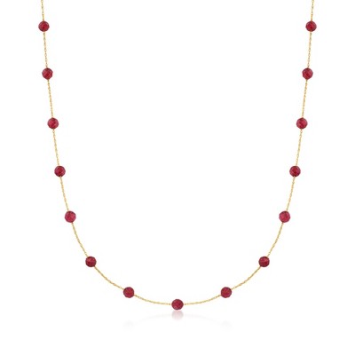 GENUINE 10KT GOLD — 2.5-3mm cultured pearl station necklace in 10kt yellow gold. Freshwater pearls. 0.75mm rope chain is 18 in. long. Polished finish. Springring clasp.
