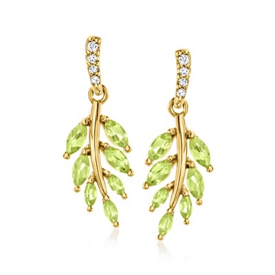 Treat yourself to a unique blend of lab-grown diamonds and mined gemstones at an incredible value. These spritely earrings feature citrus-soaked 3.20 ct. t.w. oval peridot drops that dangle from .25 ct. t.w. lab-grown diamond hoops. Crafted in polished 18kt yellow gold over sterling silver. Lab-grown diamonds are identical to mined diamonds according to their optical, physical and chemical properties. Length is 1". Hinged post, peridot and lab-grown diamond hoop drop earrings. Stone InformationGem Type 1: DiamondStone Cut 1: Good-CutStone Color 1: G-HStone Clarity 1: SI1Stone Shape 1: Round-ShapeStone Creation Method 1: SyntheticStone Treatment Method 1: Not-TreatedStone Weight 1: 0.25 CaratsNumber Of Stones 1: 24Gem Type 2: PeridotStone Cut 2: Good-CutStone Color 2: GreenStone Clarity 2: GreenStone Shape 2: Oval-ShapeStone Creation Method 2: NaturalStone Treatment Method 2: Not-TreatedStone Weight 2: 3.20 CaratsNumber Of Stones 2: 2