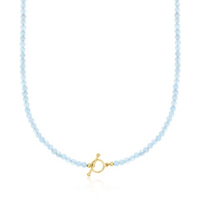 Our starry 3.5-4mm round lapis bead necklace shines with an 18kt yellow gold over sterling silver toggle clasp centerpiece. Wear this stylish statement as is, or customize with your favorite charms for a look that's special to you. Natural pyrite flecks will vary. Lapis bead toggle necklace. Stone InformationGem Type 1: Lapis-LazuliStone Cut 1: Good-CutStone Color 1: BlueStone Clarity 1: BlueStone Shape 1: Round-ShapeStone Creation Method 1: NaturalStone Treatment Method 1: DyedStone Weight 1: 0 CaratsNumber Of Stones 1: 108-132