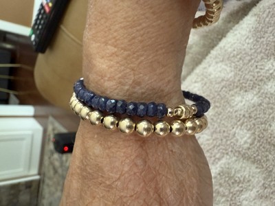 Color-rich and highly versatile, this bracelet features 30.00 ct. t.w. sapphire beads in a gorgeous blueberry hue. Over 55 rondelle faceted beads create a stylish strand that will look fantastic year-round, but especially chic with a warmer-weather wardrobe. Finishes with a 14kt yellow gold magnetic clasp for easy on-and-off. Sapphire bead bracelet. Stone InformationGem Type 1: SapphireStone Cut 1: Good-CutStone Color 1: BlueStone Clarity 1: BlueStone Shape 1: Special-Cut-ShapeStone Creation Method 1: NaturalStone Treatment Method 1: HeatedStone Weight 1: 30.00-35.00 CaratsNumber Of Stones 1: 58-65