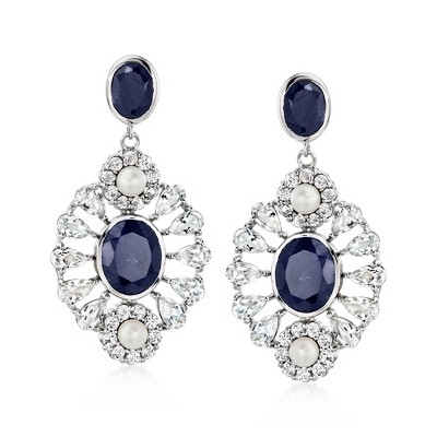 Brilliant cut round colorless cubic zirconia and blue simulated sapphire. Polished sterling silver.