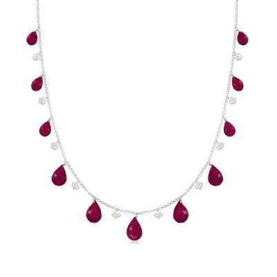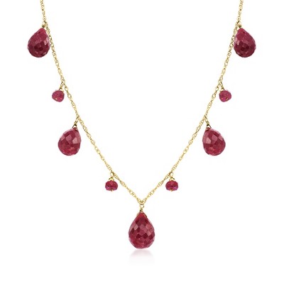 GENUINE 10KT GOLD — 4.10 ct. t.w. multicolored sapphire and 1.30 ct. t.w. ruby bead station necklace in 10kt yellow gold. 3-4mm rondelle faceted multicolored sapphire and ruby beads. Polished finish. .75mm rope chain is 18 in. long. 3/16 in. wide. Springring clasp.