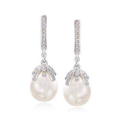 Product Name: Ross-Simons 4.5-5mm Cultured Pearl Drop Earrings With Diamonds in 18kt Gold Over Sterling