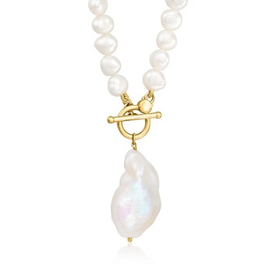 Ross-Simons 5-15mm Cultured Baroque Pearl Toggle Necklace in 18kt Gold Over Sterling Size 20