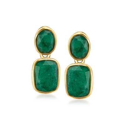 Product Name: Ross-Simons 5.75 ct. t.w. Emerald and .10 ct. t.w. White Topaz Drop Earrings in 18kt Gold Over Sterling