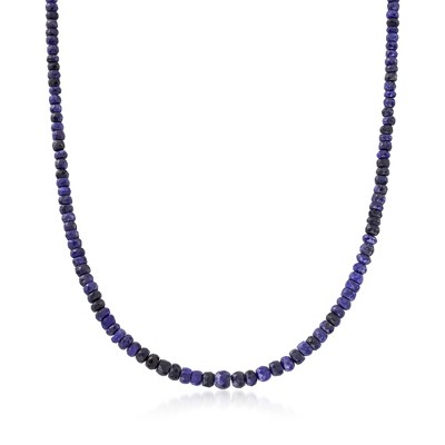 GENUINE 10KT GOLD — 6.00 ct. t.w. sapphire bead necklace in 10kt yellow gold. 3-4mm round faceted sapphire beads. Polished finish. 0.75mm rope chain is 18 in. long. 1/8 in. wide. Springring clasp.