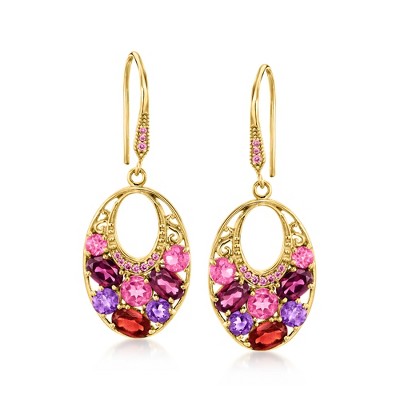 • 18kt yellow gold over sterling silver, multi-stone earrings for women.