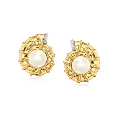 - 18kt yellow gold over sterling silver, diamond and cultured freshwater pearl earrings for women.