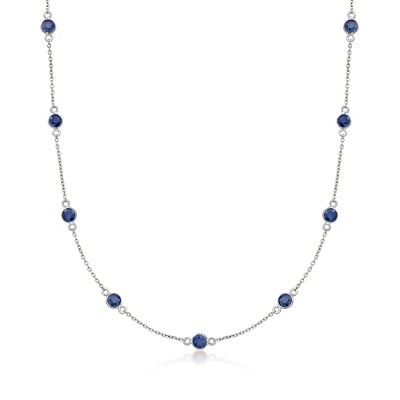 Ross-Simons 7.20 ct. t.w. Sapphire and .25 ct. t.w. Diamond Station Necklace in Sterling Silver - 1 of 3