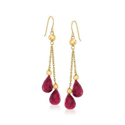 Ross-Simons 7.50 ct. t.w. Ruby Drop Earrings in 18kt Gold Over Sterling