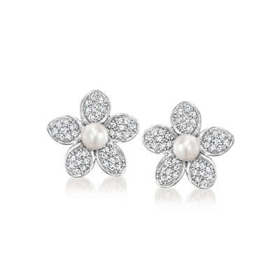 CULTURED PEARL AND STERLING SILVER —8-8.5mm cultured pearl dog earrings with diamond accents in sterling silver. Cultured freshwater button pearls. Round diamond accents. Polished finish. 3/16 in. hanging length, 1/2 in. wide. Post/clutch.