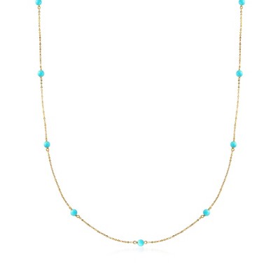Ross-Simons 8mm Blue Lapis Bead Station Necklace in 14kt Yellow Gold