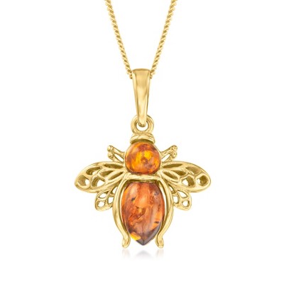 Amber's honey-golden glow and organic fossil inclusions make it one of nature's most intriguing wonders. This acorn pendant necklace features a 15x12mm oval amber cabochon in textured and polished 18kt yellow gold over sterling silver. Suspends from a curb chain. Springring clasp, amber acorn pendant necklace. Necklace drop length - 7/8 inch long. Necklace drop width - 1/2 inch wide. Stone InformationGem Type 1: AmberStone Cut 1: CabochonStone Color 1: OrangeStone Clarity 1: OrangeStone Shape 1: Oval-ShapeStone Creation Method 1: NaturalStone Treatment Method 1: Heat-TreatedStone Weight 1: 0 CaratsNumber Of Stones 1: 1