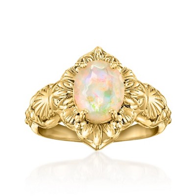 Product Name: Ross-Simons Ethiopian Opal Ring With 0.20 ct. t.w. White Topaz in 18kt Gold Over Sterling Size 5