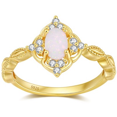 Adorn yourself with irresistible shimmer. A magnificent 10x8mm oval Ethiopian opal cabochon glows in a frame of 18kt yellow gold over sterling silver swirls, dotted with 0.20 ct. t.w. white topaz rounds. 1/2" wide. White topaz and opal ring. Stone InformationGem Type 1: OpalStone Cut 1: CabochonStone Color 1: WhiteStone Clarity 1: WhiteStone Shape 1: Oval-ShapeStone Creation Method 1: NaturalStone Treatment Method 1: ImpregnatedStone Weight 1: 0 CaratsNumber Of Stones 1: 1Gem Type 2: TopazStone Cut 2: Good-CutStone Color 2: WhiteStone Clarity 2: WhiteStone Shape 2: Round-ShapeStone Creation Method 2: NaturalStone Treatment Method 2: Heat-Treated,IrradiatedStone Weight 2: 0.20 CaratsNumber Of Stones 2: 10