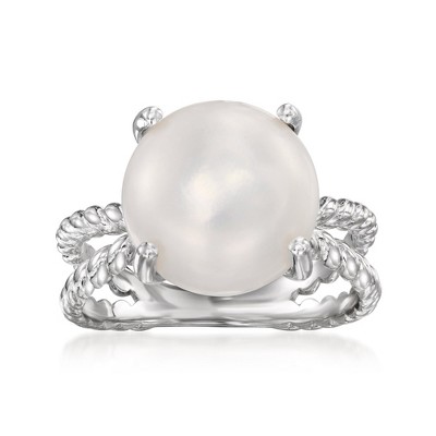 Product Name: Ross-Simons Italian 12mm Cultured Pearl and .78 ct. t.w. CZ Ring in Sterling Silver Size 5