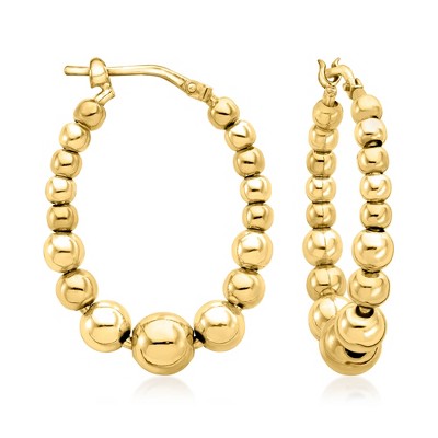 Bright and bubbly, these Italian-made hoop earrings shine with glossy, graduated 18kt yellow gold over sterling silver beads. Perfect for pairing with everything from blue jeans to your favorite little black dress. Length is 1 3/8". Snap-bar, 18kt gold over sterling graduated bead hoop earrings.