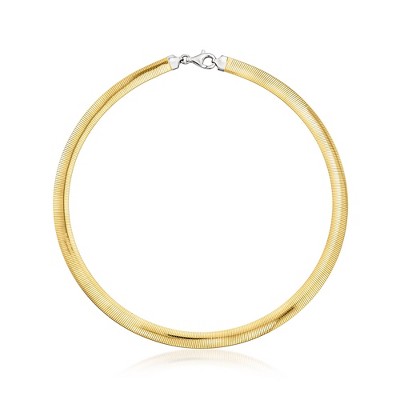 • ITALIAN TWO-TONE STERLING SILVER — Italian 6mm reversible omega necklace in sterling silver and 18kt yellow gold over sterling silver. Polished finish. 16 in. long. 6mm wide. 20.7 grams. Lobster clasp.