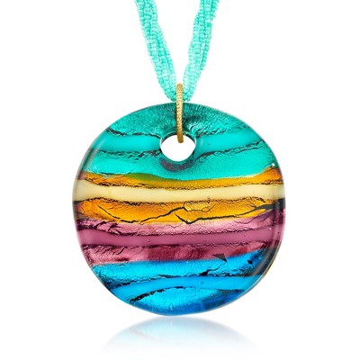 Ross-Simons Italian Red, Black and Gold Murano Glass Bead Torsade Necklace in 18kt Gold Over Sterling Size 18