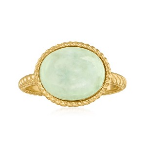 • JADE AND 18KT GOLD OVER STERLING — Jade roped ring in 18kt yellow gold over sterling silver. 12x10mm oval jade cabochon. Polished finish. 1/2 in. wide. Size 5.