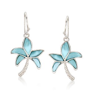 Ross-Simons Larimar Palm Tree Drop Earrings in Sterling Silver