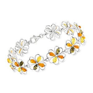 Product Name: Ross-Simons Multicolored Amber 4-Leaf Clover Bracelet in Sterling Silver Size 7