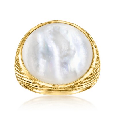 Ross-Simons Onyx and Mother-Of-Pearl Ring With .10 ct. t.w. White Topaz in 18kt Gold Over Sterling Size 5