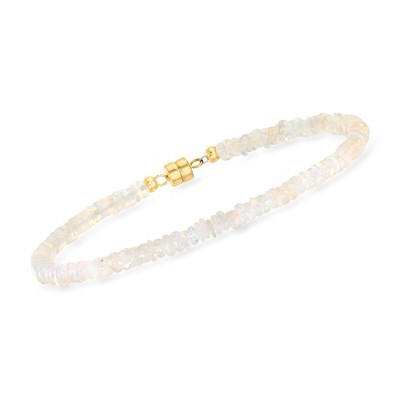 Perfectly stackable, our pretty bracelet brings a gentle blush of color to your look as 3-3.5mm round faceted pink opal beads parade around the wrist. 18kt yellow gold over sterling silver. Lobster clasp, pink opal bead bracelet. Stone InformationGem Type 1: OpalStone Cut 1: Good-CutStone Color 1: PinkStone Clarity 1: PinkStone Shape 1: Round-ShapeStone Creation Method 1: NaturalStone Treatment Method 1: ImpregnatedStone Weight 1: 0 CaratsNumber Of Stones 1: 47-54