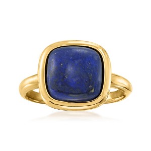 Smooth and serene, this might be the prettiest ring you've ever seen! A 9.5-10mm square lapis cabochon gleams at the center of a simple 18kt yellow gold over sterling silver. Polished finish. 1/2" wide. Lapis ring. Stone InformationGem Type 1: Lapis-LazuliStone Cut 1: CabochonStone Color 1: BlueStone Clarity 1: BlueStone Shape 1: Square-ShapeStone Creation Method 1: NaturalStone Treatment Method 1: DyedStone Weight 1: 0 CaratsNumber Of Stones 1: 1