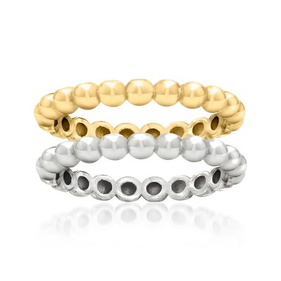 Ross-Simons Sterling Silver and 18kt Gold Over Sterling Jewelry Set: 2 Beaded Rings