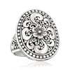 Adorned with floral filigree and an artful dot-and-swirl motif, this oxidized sterling silver ring boasts the best of Bali-style design. 1" wide. Sterling silver Bali-style floral filigree ring.