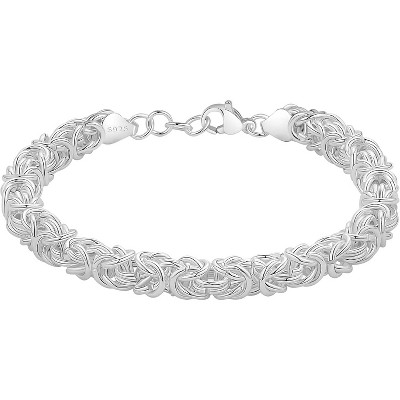 Crafted in bright sterling silver, this beloved Byzantine bracelet features a classic woven pattern that continues to endure time and trend. Lobster clasp, sterling silver Byzantine bracelet.