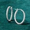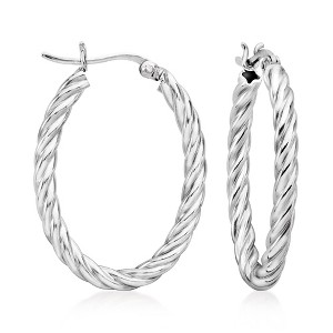 Every jewelry box needs a pair of classic hoop earrings -- these fit the bill! Twisted ovals of polished sterling silver grace the ears for a perfect everyday look. Length is 1 1/8". Snap-bar, sterling silver twisted hoop earrings.