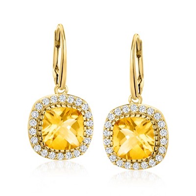 Product Name: Ross-Simons Turquoise and 2.50 ct. t.w. Citrine Sunflower Drop Earrings in 18kt Gold Over Sterling